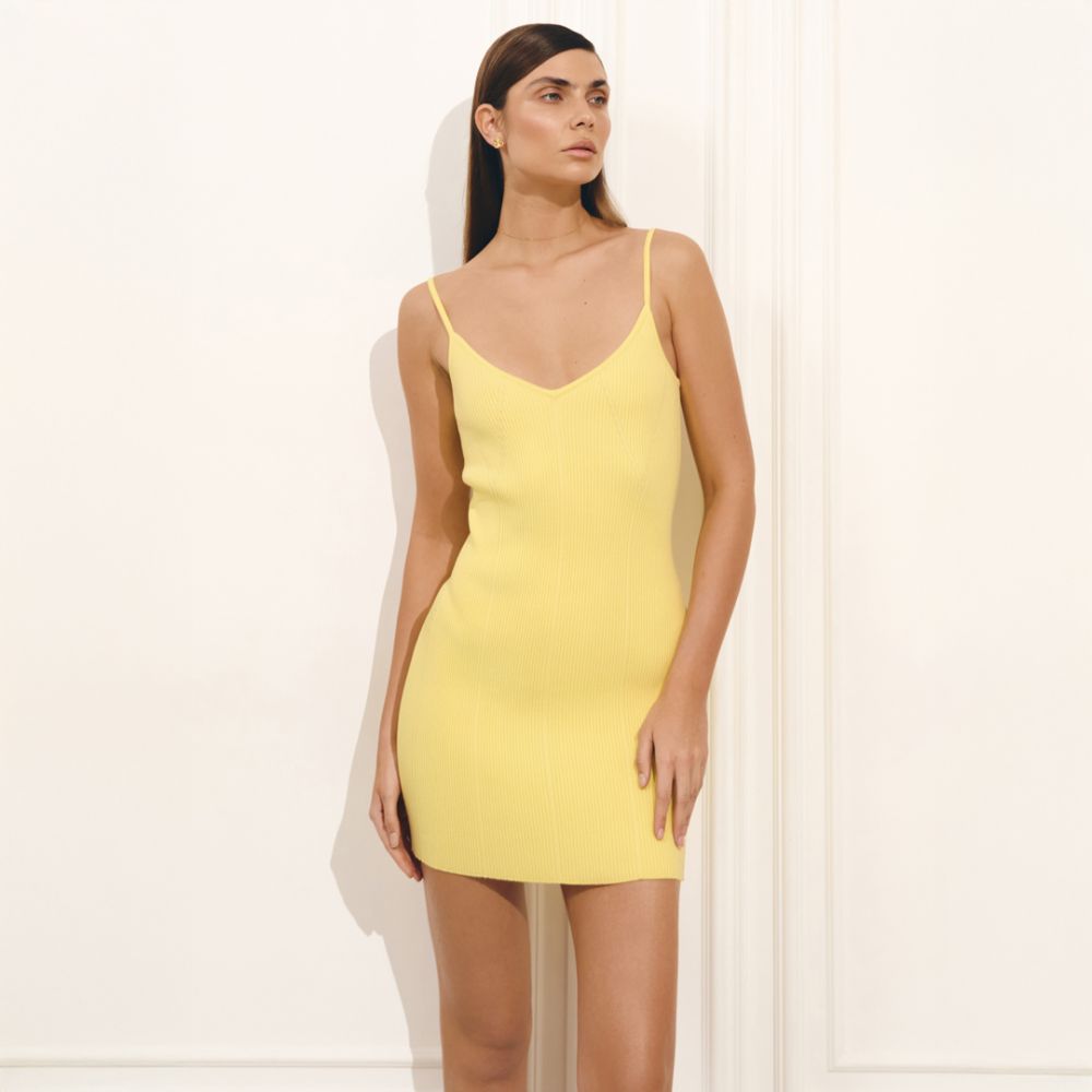 Сарафан міні на тонких бретелях з акцентними лініями на грудях та стегнах, які гарно підкреслюють силует фігури. Виконаний по фігурі у лимонному кольорі з делікатної італійської віскози, що чудово тримає форму. Відкрита спинка з прямим вирізом додає образу елегантної сміливості. Одяг Mareoni виготовлений із 100% віскози, тому температура прання не повинна перевищувати 30 °. Речі ніжні й делікатні, періть їх вручну або на спеціальному режимі в пральній машині без використання відбілювача та інших хімічних реагентів. Зберігайте їх на полицях, а не на плічках. Ми не рекомендуємо прасувати або відпарювати одяг, так як це може його пошкодити.